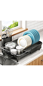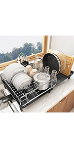 - Create valuable vertical space with this sleek-looking dish drying rack for kitchen countertop from SNTD. Combining contemporary good looks with a conveniently flexible design, the dish drainer adds some storage function in the kitchen.