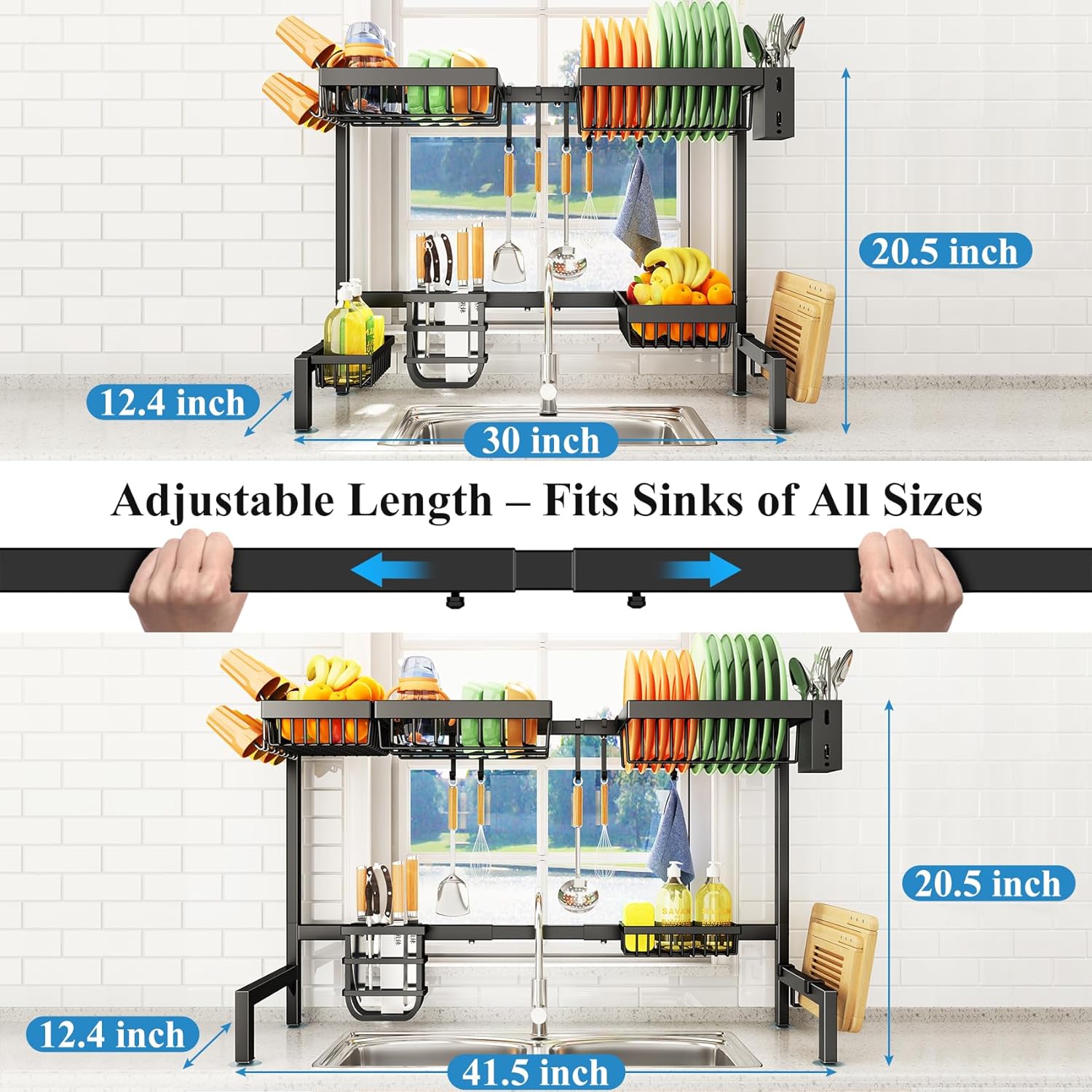 4 Baskets Over The Sink Dish Drying Rack - Large Kitchen Dish Rack with Adjustable Design, Space Saving Drying Rack, 12.4" D x 30"-41.5" W x 20.5" H