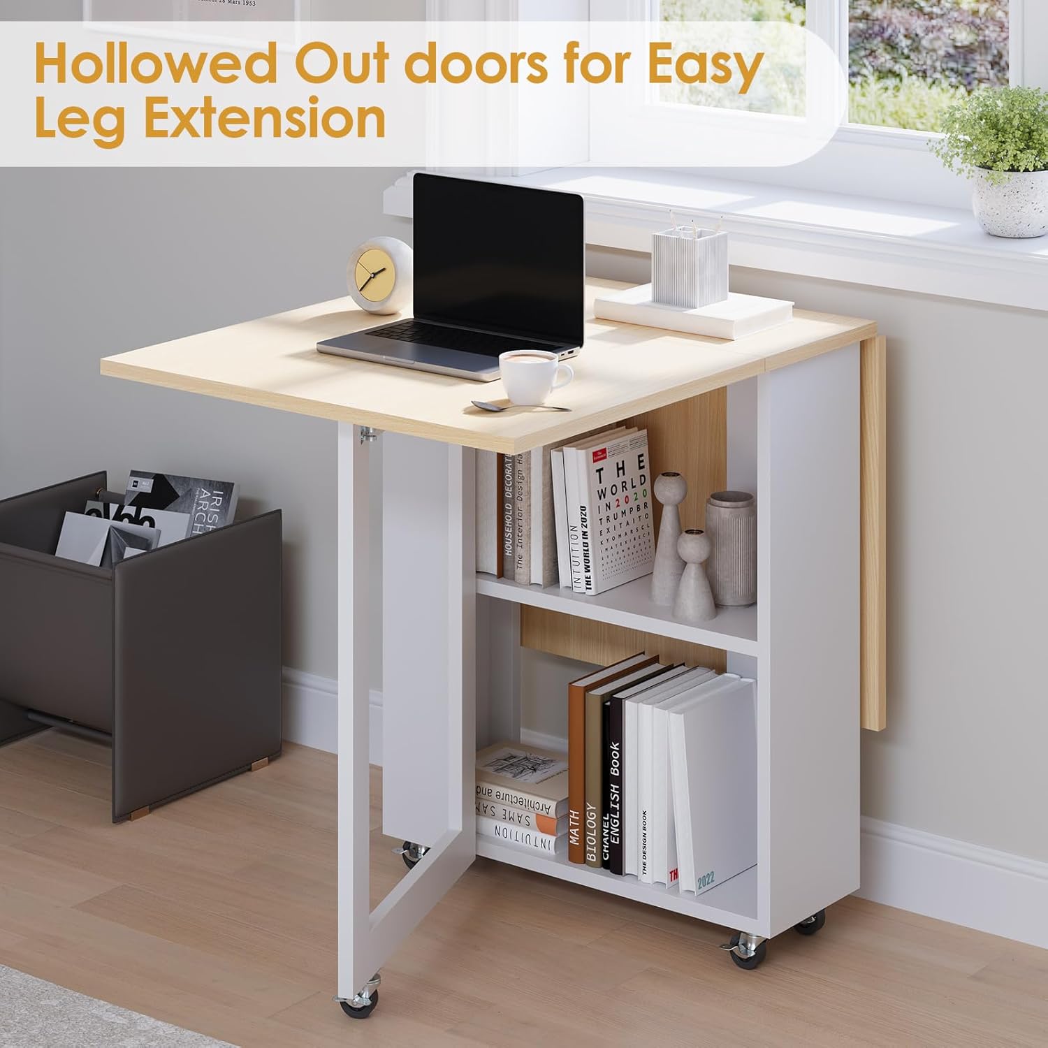 LotFun Folding Dining Table with 2 Storage Racks, Space Saving Dining Table with 6 Wheels, Kitchen Table for Small Spaces (48" x 24" x 30")