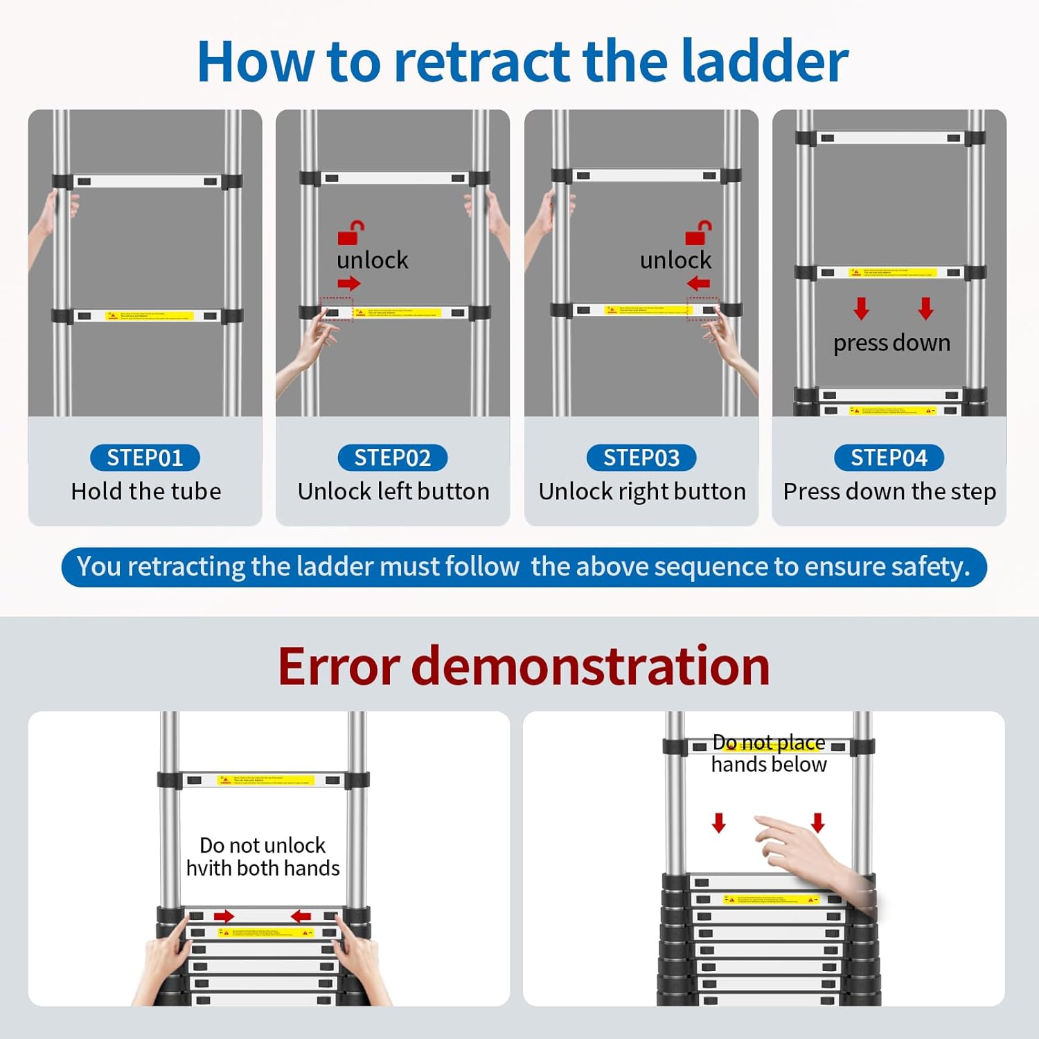 Telescoping Ladder,12.5 FT Extension Ladder, Heavy Duty 330lbs Max Capacity, Multi-Purpose Collapsible Ladder for RV or Outdoor Work Black